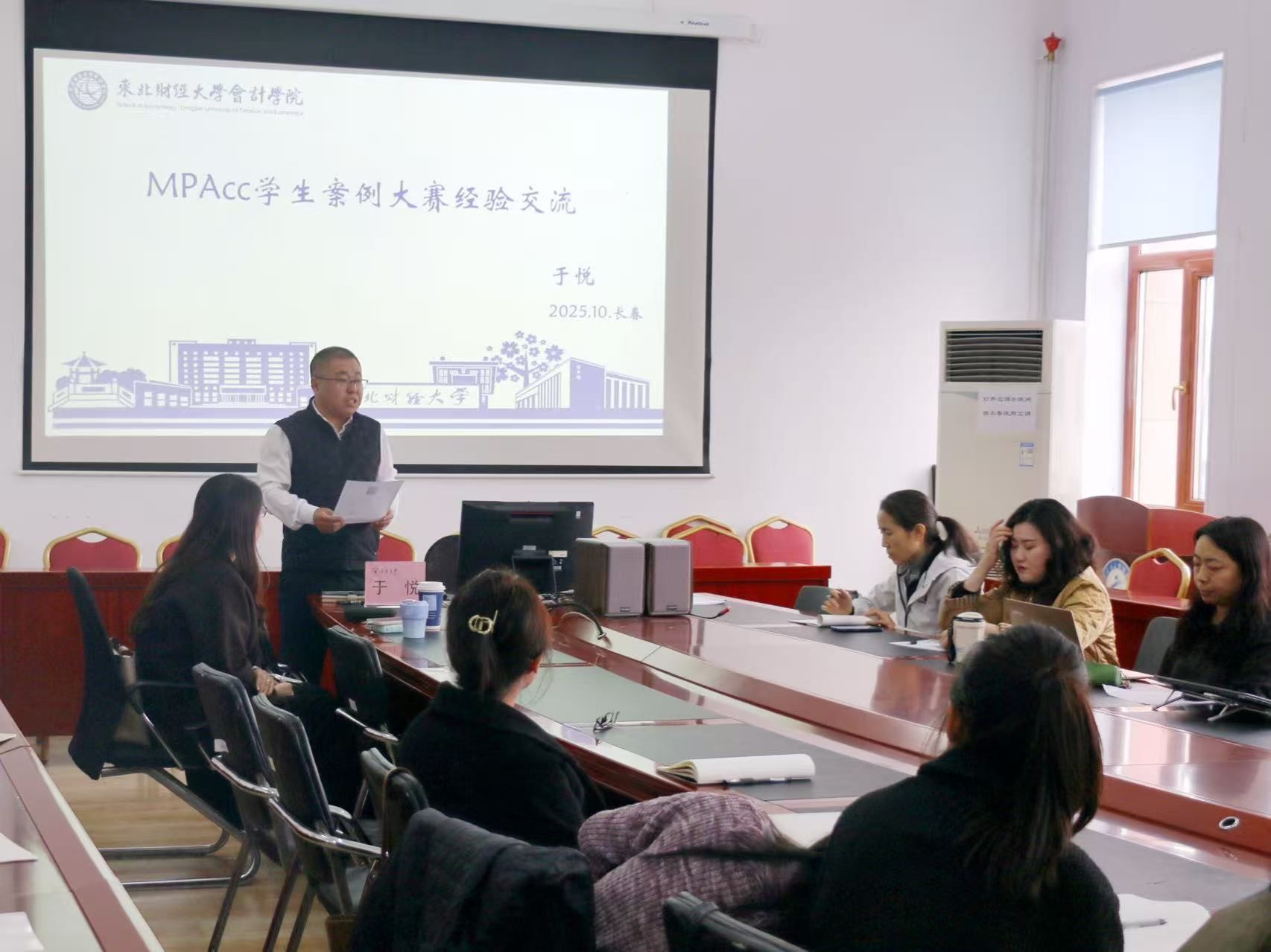 为进一步提升研究生实践创新能力,助力学子备战吉林省MPAcc案例分析大赛,10月15日下午,管理学院在第一教学楼404室成功举办“MPAcc案例大赛经验交流”专题讲座。本次讲座由刘富成副院长主持,东北财经大学会计学院于悦副教授主讲,会计系、财务系教师和全体研究生参加本次讲座。